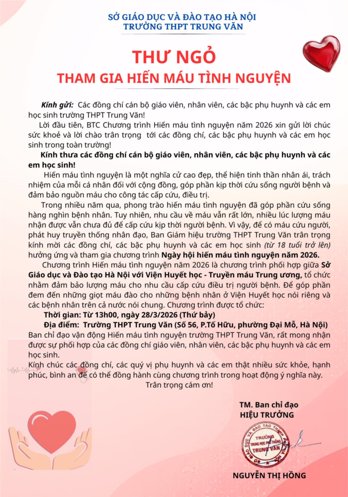 💉 Mỗi giọt máu trao đi không chỉ góp phần cứu sống người bệnh mà còn lan tỏa những giá trị nhân văn tốt đẹp, góp phần xây dựng một môi trường giáo dục giàu lòng yêu thương.