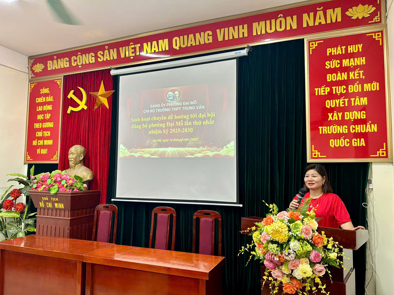 Chi bộ trường THPT Trung Văn, tổ chức sinh hoạt chuyên đề hướng tới Đại hội đảng bộ phường Đại Mỗ lần thứ nhất, Nhiệm kỳ 2025-2030